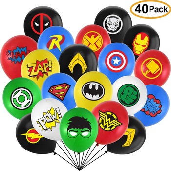 40 Uds. Juegos de globos de látex de dibujos animados de 12 pulgadas globos de fiesta de cumpleaños para Baby Shower Hero suministros de decoración de fiesta promedio para niños